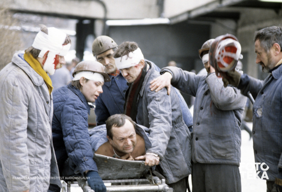 stan wojenny, kopalnia, górnik, łóżko, krew, kask, ranny, opatrunek, noszeMiejsca