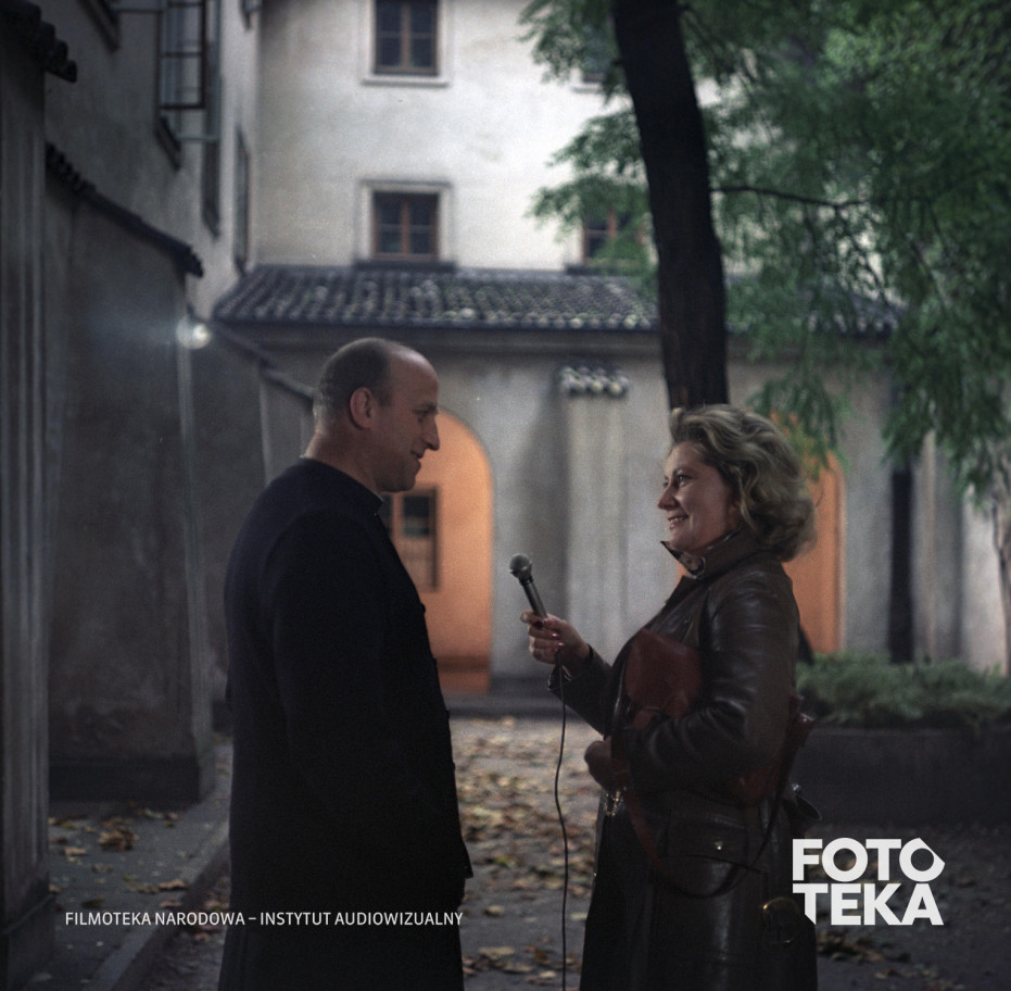 dziennikarze, mikrofon, wywiad, ksiądz