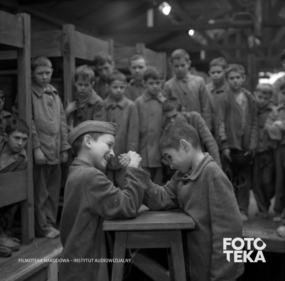 dzieci, obozy koncentracyjne, ręce, stołek, zawody