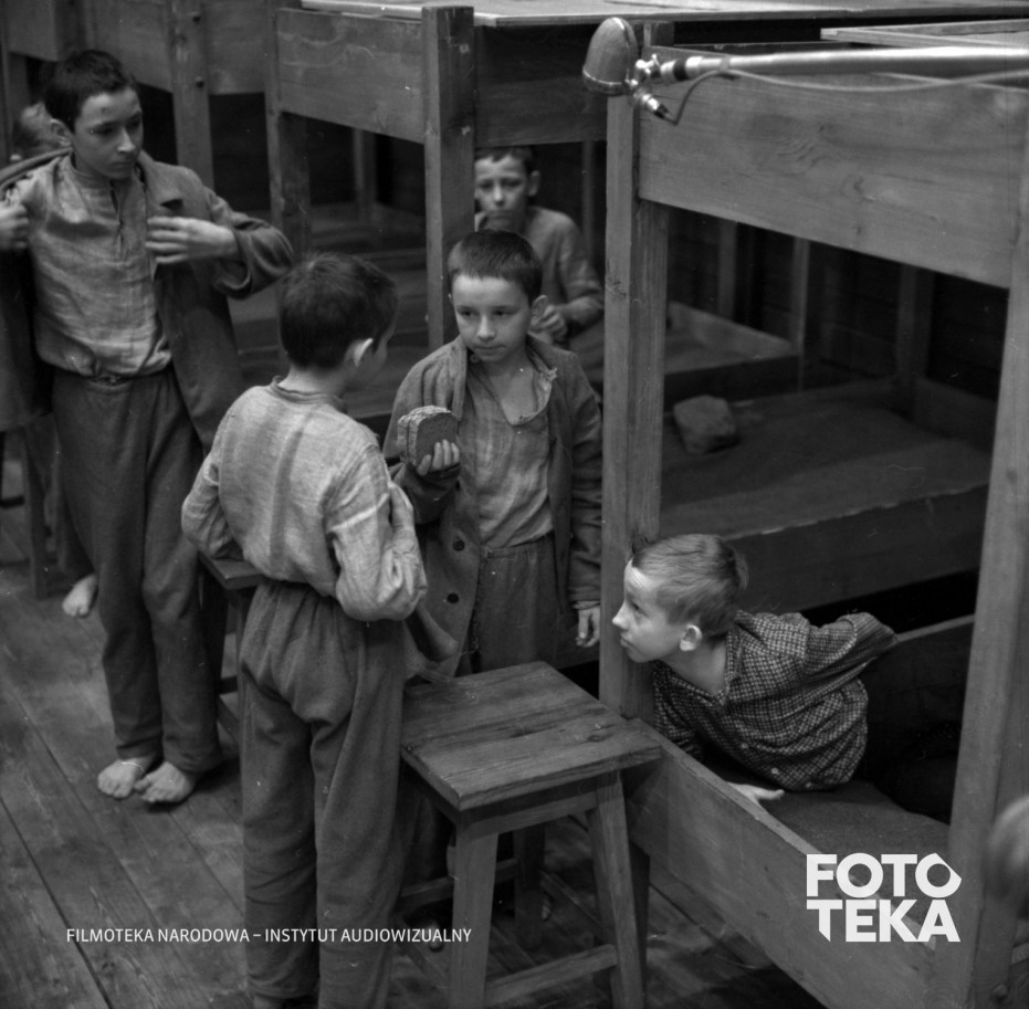 dzieci, obozy koncentracyjne, mikrofon, łóżko, chleb, stołek