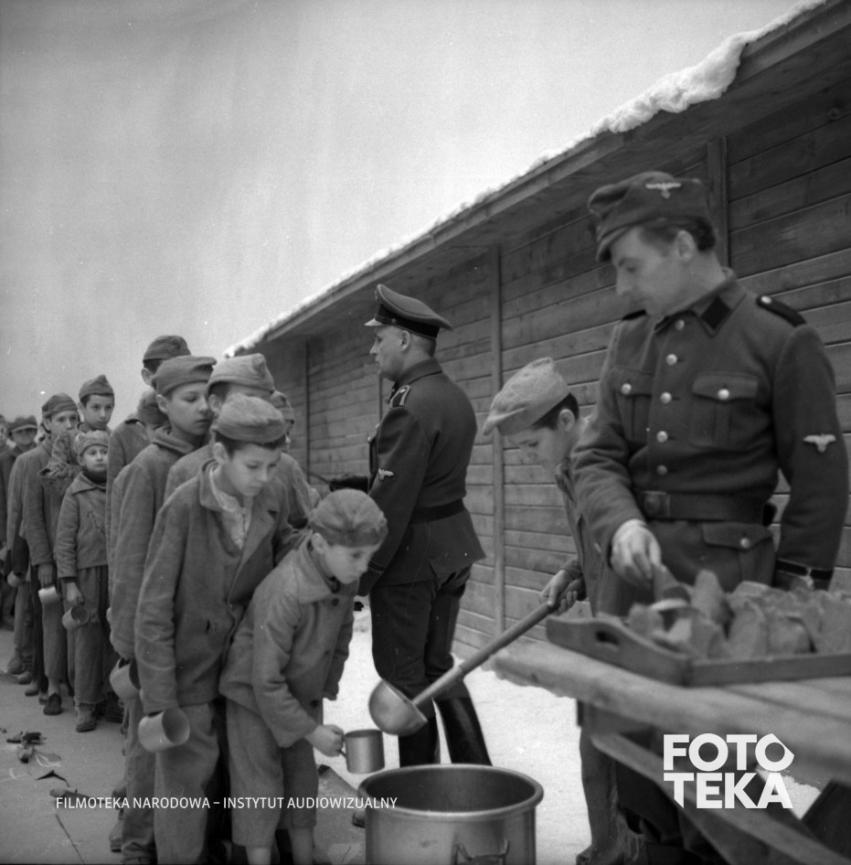 dzieci, obozy koncentracyjne, jedzenie, chleb, taca, kolejka, garnek, łyżka
