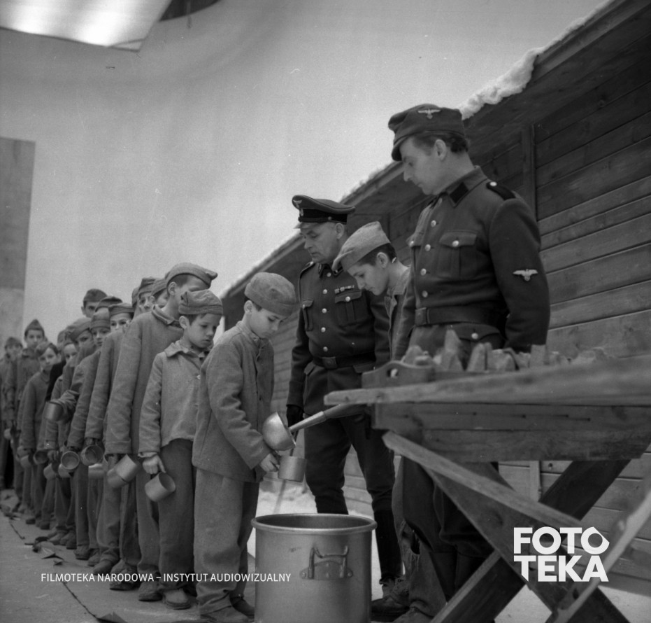 dzieci, obozy koncentracyjne, jedzenie, chleb, stół, kubek, taca, kolejka, garnek, łyżka