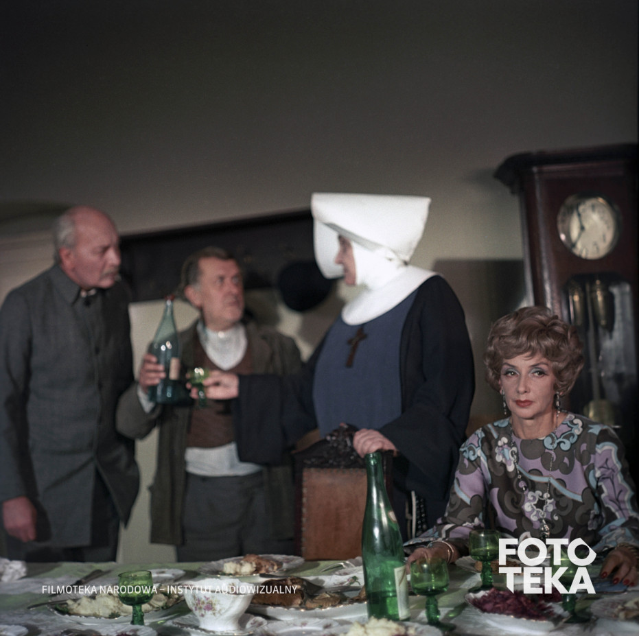 alkohol, jedzenie, przyjęcie, butelka, zegar, zakonnica, habit