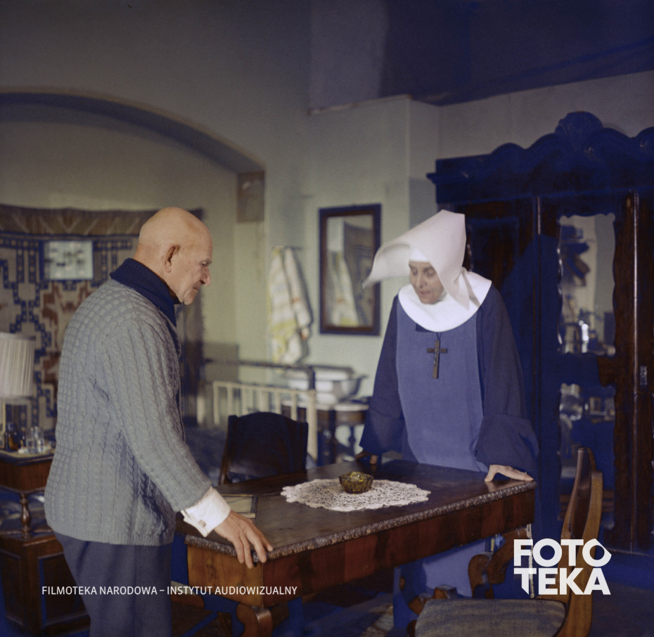 krzyż, stół, kredens, krzesło, łysina, zakonnica, habit, pokój