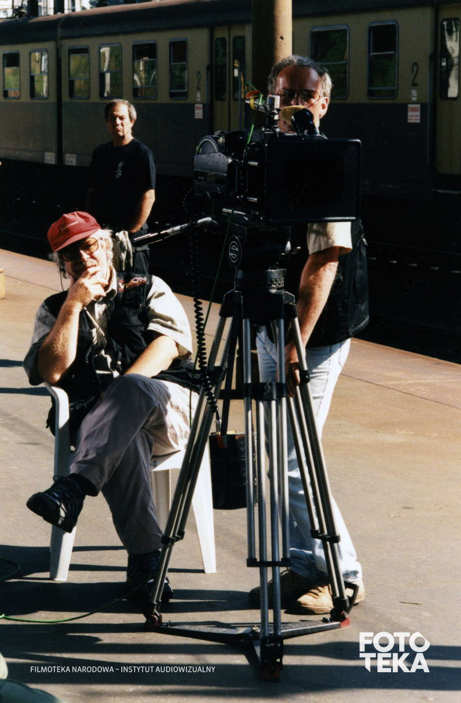dworzec, peron, kolej, pociąg, kamera, krzesło, statyw