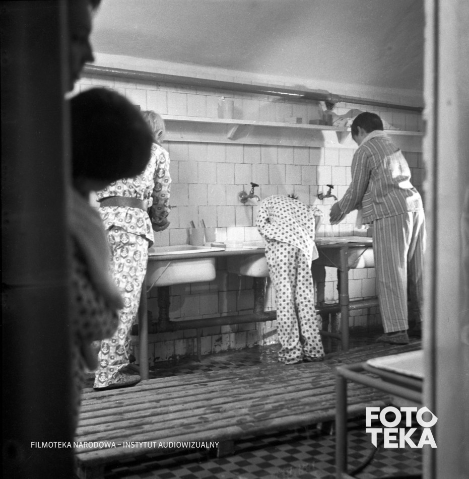 domy dziecka, Dom Dziecka zob. sierociniec, łazienka, piżama , umywalka, mycieMiejsca