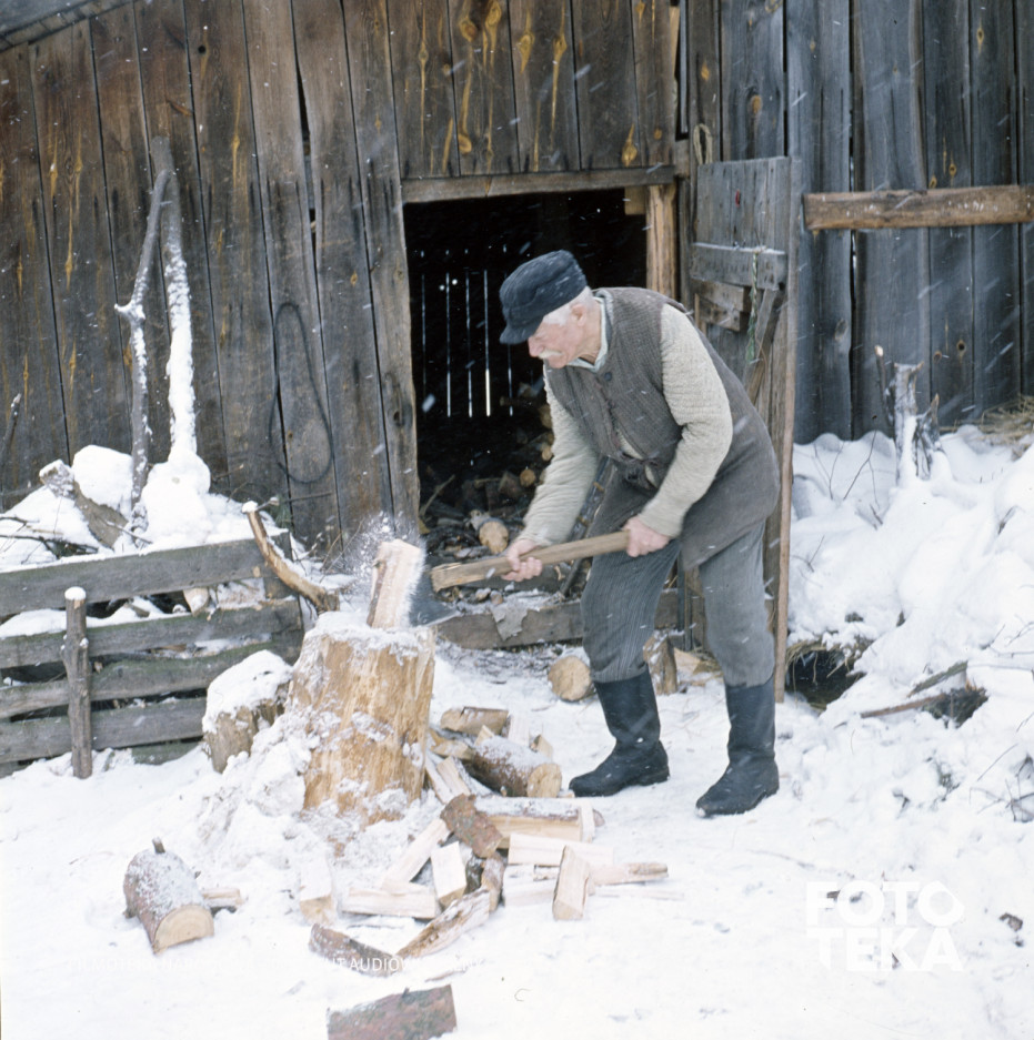 gospodarstwo domowe, wieś, zima, prace domowe, siekiera, śnieg, drewno, gospodarstwo wiejskie