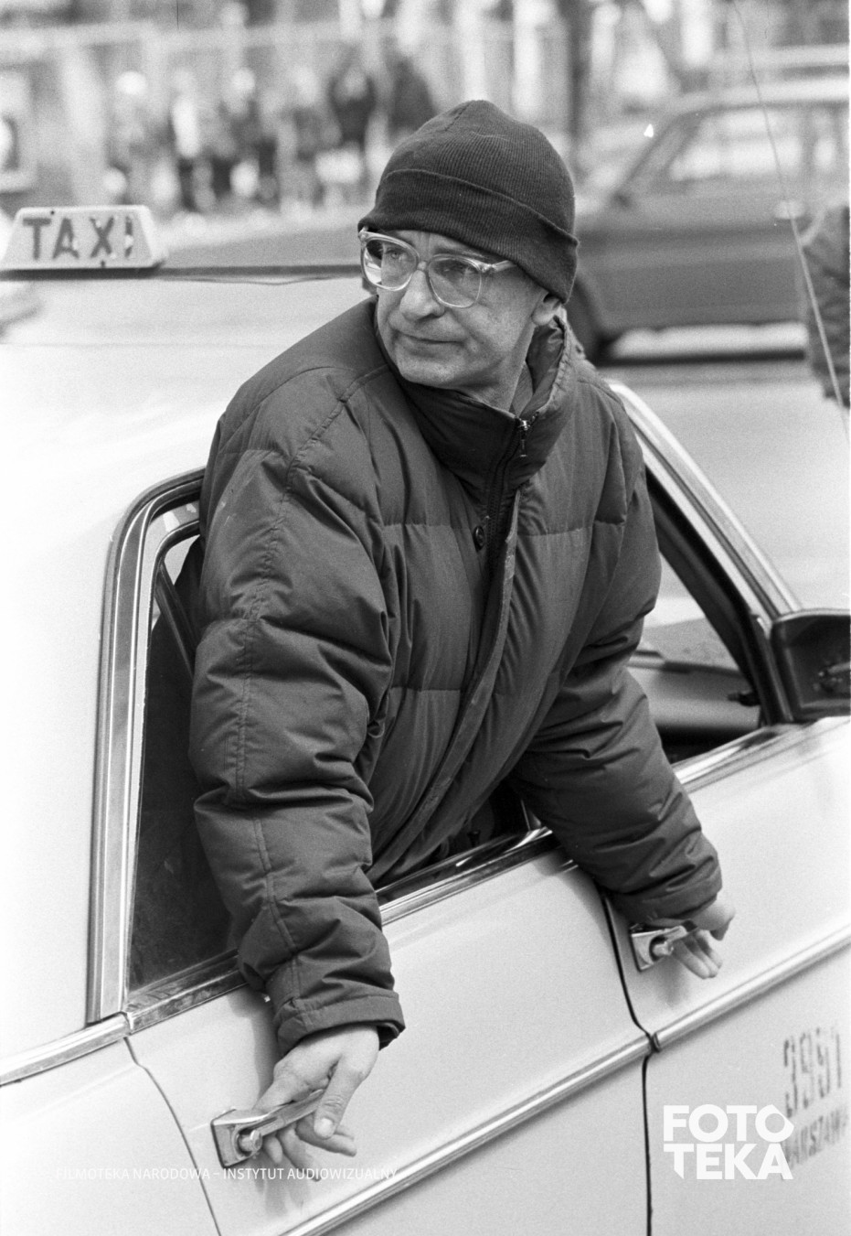 Opis: Werkfotos z planu filmu „Krótki film o zabijaniu” (1987), reż. Krzysztof Kieślowski. Reżyser podczas pracy na planie. Autor zdjęcia: Romuald Pieńkowski, czarno-biały negatyw, format 35 mm | On the set of “A Short Film About Killing” (1987), dir. Krzysztof Kieślowski. The director at work on set. Photo: Romuald Pieńkowski, black and white negative, 35 mm format