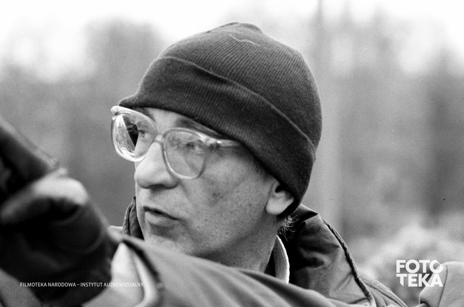 Opis: Werkfotos z planu filmu „Krótki film o zabijaniu” (1987), reż. Krzysztof Kieślowski. Reżyser podczas pracy na planie. Autor zdjęcia: Romuald Pieńkowski, czarno-biały negatyw, format 35 mm | On the set of “A Short Film About Killing” (1987), dir. Krzysztof Kieślowski. The director at work on set. Photo: Romuald Pieńkowski, black and white negative, 35 mm format