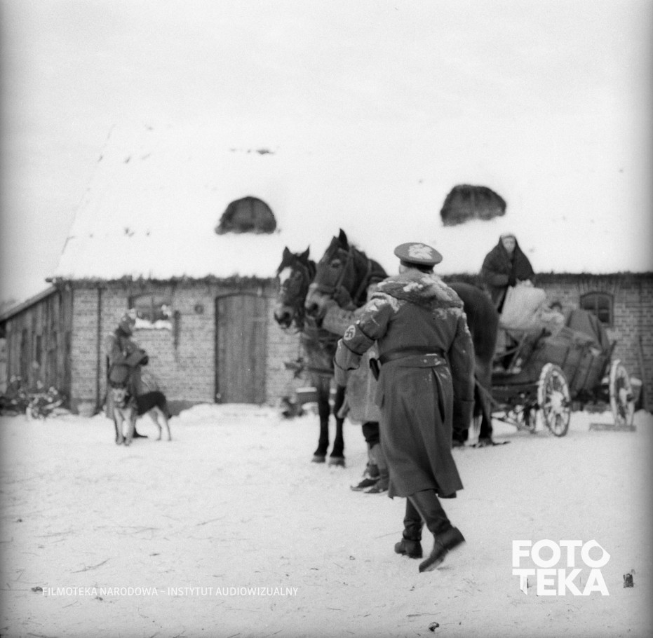 zima, koń, wóz, śnieg, stodoła, hitlerowiec