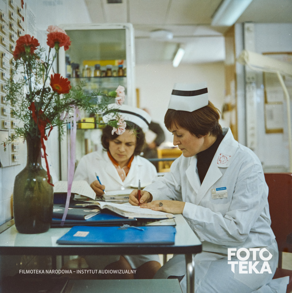 kwiaty, kwiaty w wazonie, wazon, pielęgniarka
