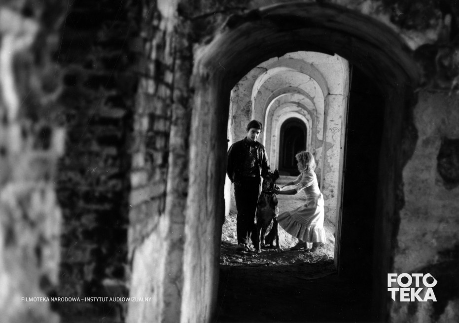 dzieci, pies, piwnica, korytarz, sukienka, loch