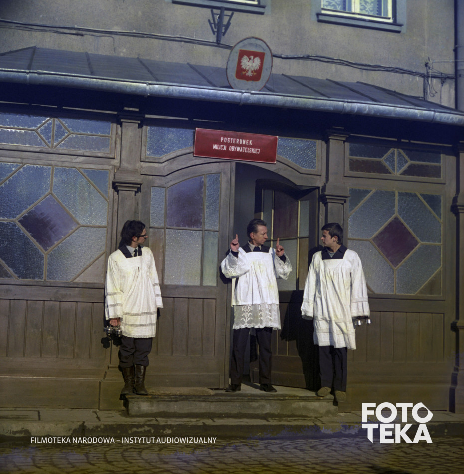 godło, drzwi, komisariat MO, ministrant, orzeł, gestykulacjaMiejsca