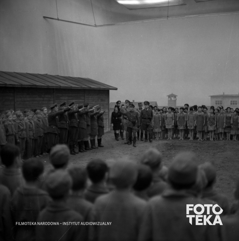 dzieci, obozy koncentracyjne, tłum, hitlerowiec, salutowanie