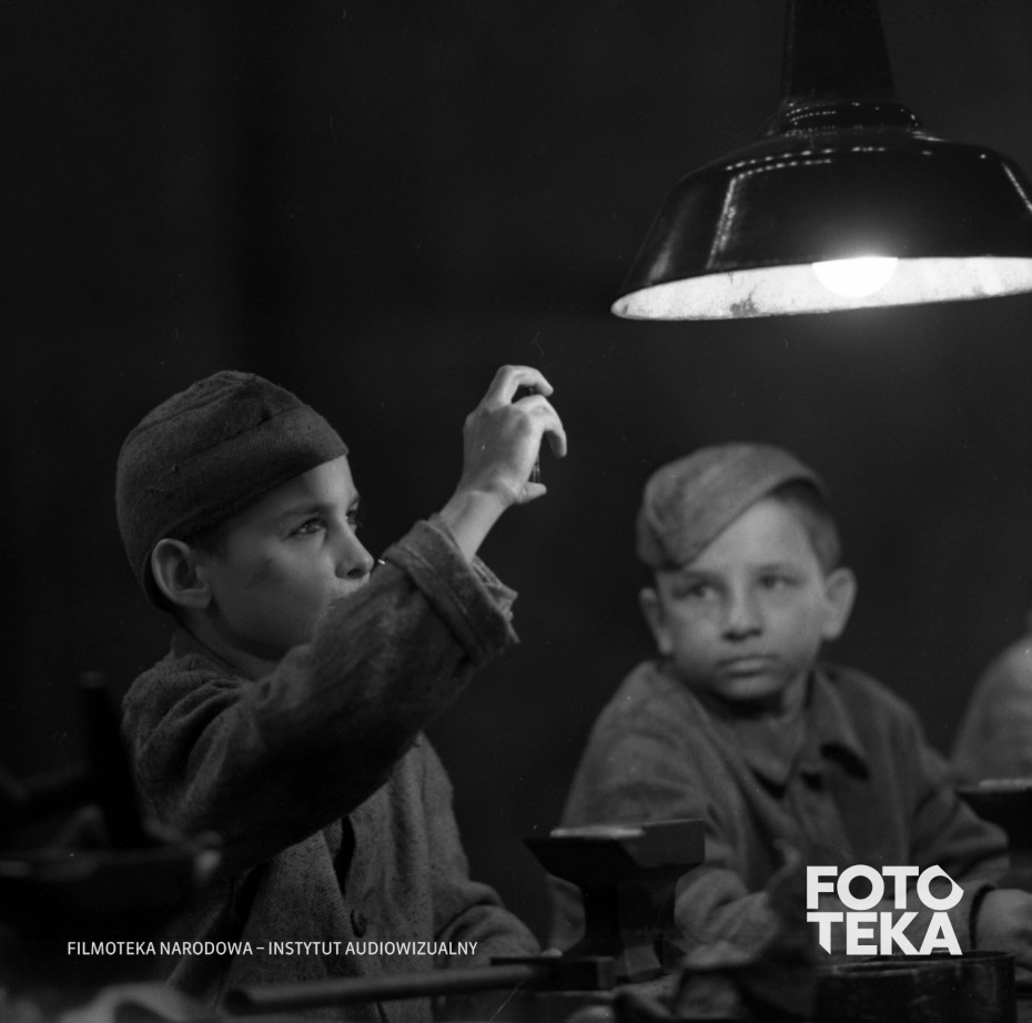 dzieci, obozy koncentracyjne, warsztat, lampa, młotek, narzędzia, kowadło, igła
