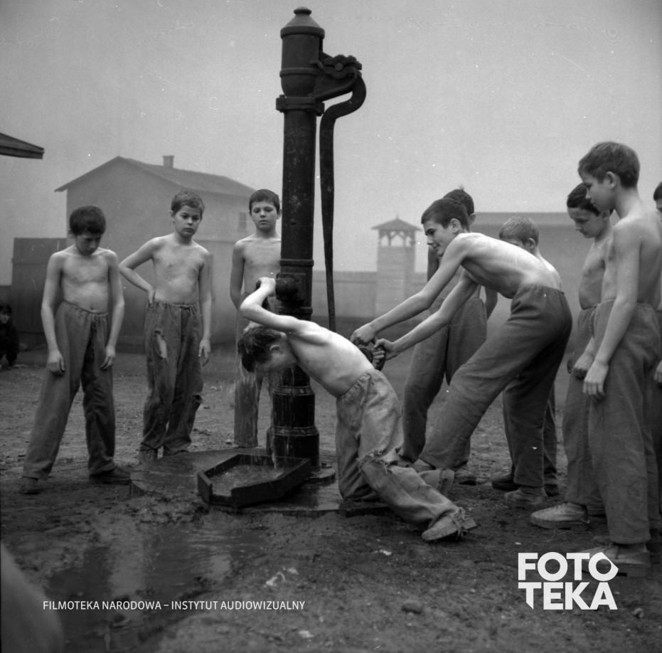 dzieci, obozy koncentracyjne, woda, błoto, mycie, pompa