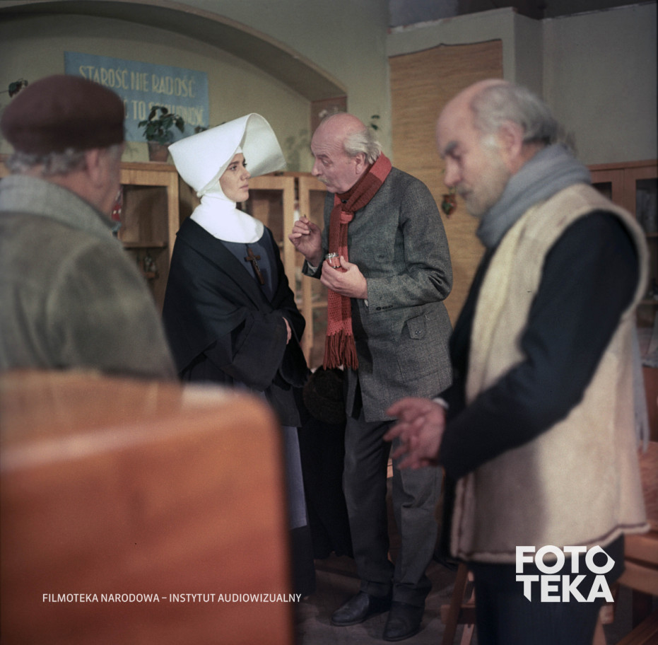 starość, beret, łysina, zakonnica, szalik, telewizor, habit, kamizelka