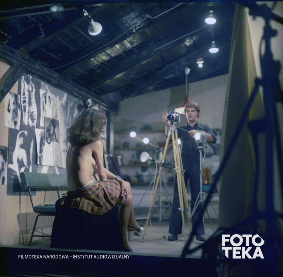 nagość, aparat fotograficzny, fotograf, fotografia, lampa, zdjęcie, pozowanie, biust, statyw, atelier