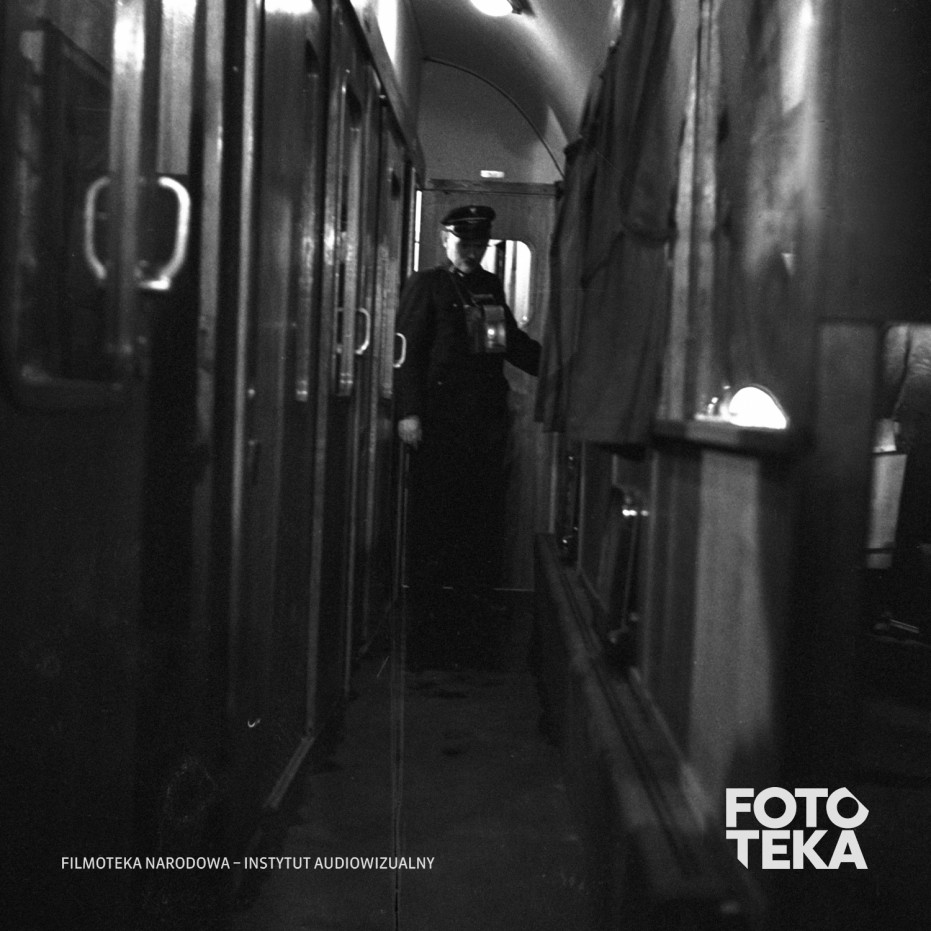 mundur, pociąg, przedział, korytarz