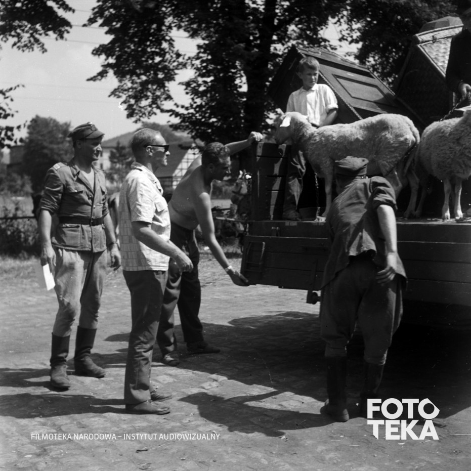 repatriacja, wojsko, mundur, dziecko, ciężarówka, zwierzęta, owca, bruk