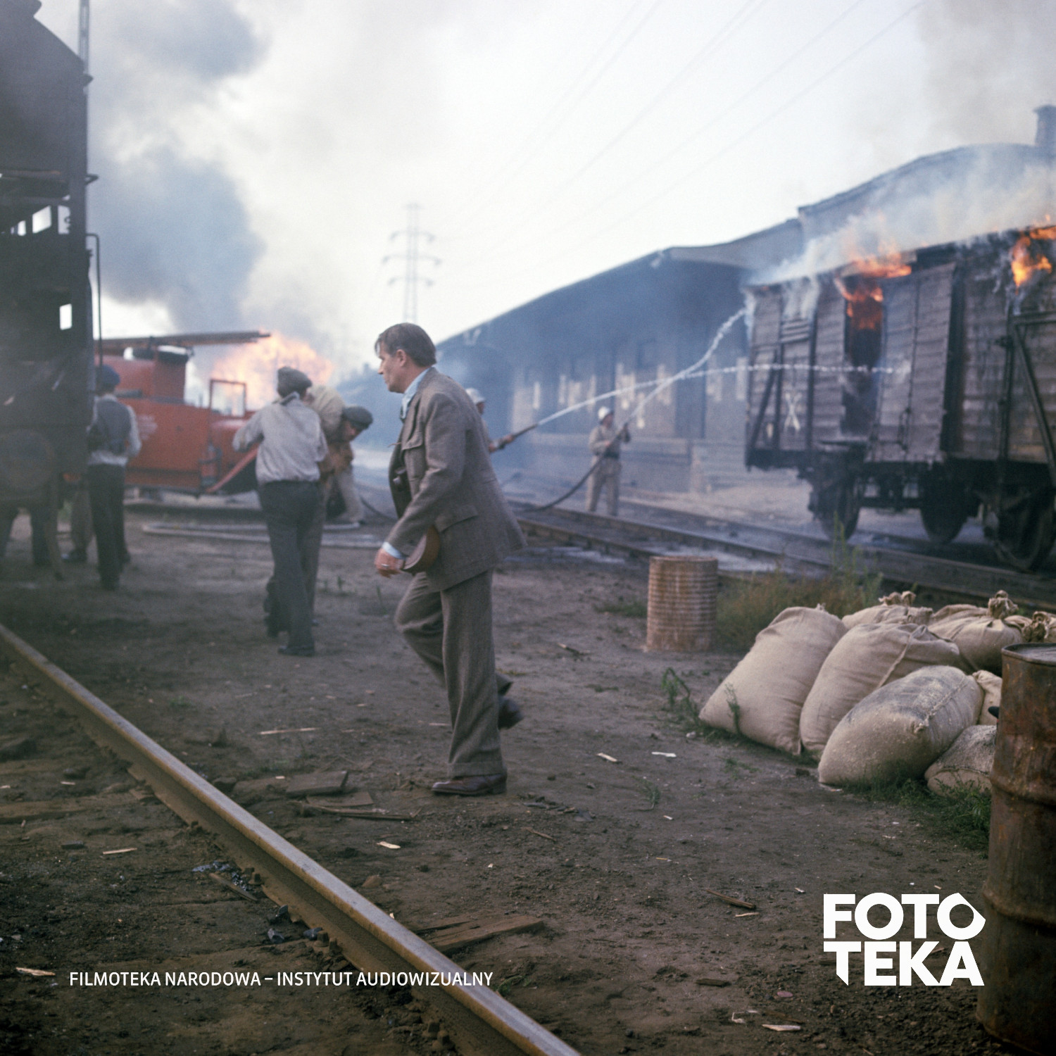 Filmoteka Narodowa – Instytut Audiowizualny informuje, iż wszystkie zdjęcia zamieszczone w serwisie Fototeka FINA są chronione prawem autorskim. Kopiowanie, udostępnianie i rozpowszechnianie zdjęć odbywa się na zasadach przewidzianych w regulaminie Fototeki. Kopiowanie, udostępnianie i rozpowszechnianie zdjęć bez uprzedniej zgody FINA i właścicieli praw jest zabronione.Napisz do nas jeśli zauważyłeś błąd w opisie lub posiadasz informacje, których nam brakuje.
