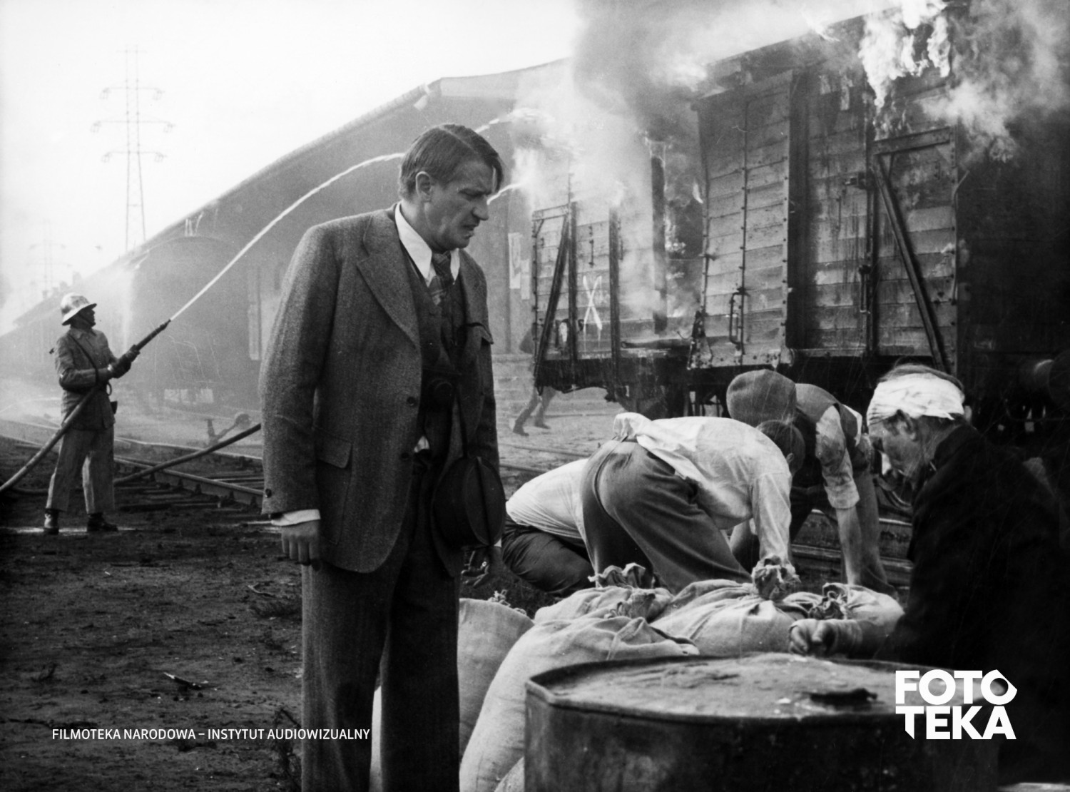 Filmoteka Narodowa – Instytut Audiowizualny informuje, iż wszystkie zdjęcia zamieszczone w serwisie Fototeka FINA są chronione prawem autorskim. Kopiowanie, udostępnianie i rozpowszechnianie zdjęć odbywa się na zasadach przewidzianych w regulaminie Fototeki. Kopiowanie, udostępnianie i rozpowszechnianie zdjęć bez uprzedniej zgody FINA i właścicieli praw jest zabronione.Napisz do nas jeśli zauważyłeś błąd w opisie lub posiadasz informacje, których nam brakuje.